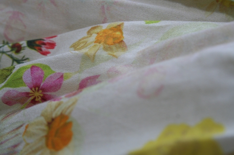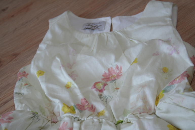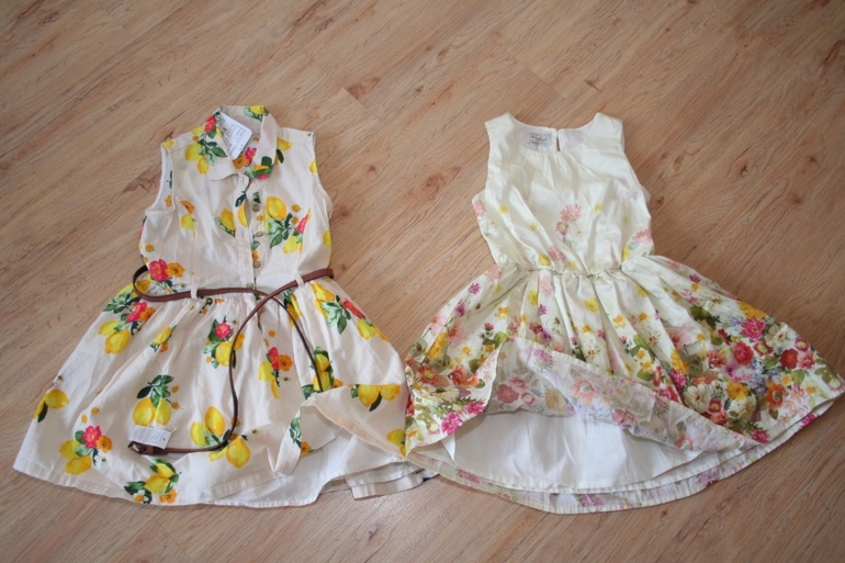 Платья оба на 4-5, т.к. на ближайшее время гардероб забит ими. Немного великоваты, но в принципе, к осени в саду можно будет носить. Понравилось, что оба с подъюбниками, придают дополнительный объем. Очень легкие, воздушные. С цветами вообще сказка. Ткань приятная, на ощупь мягкий хлопочек, а на вид переливается, как шелк.