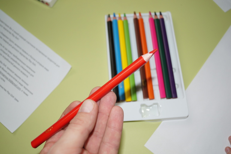 Кстати о форме карандашей... они, повторюсь, треугольной формы со слегка закругленными краями, что позволяет: