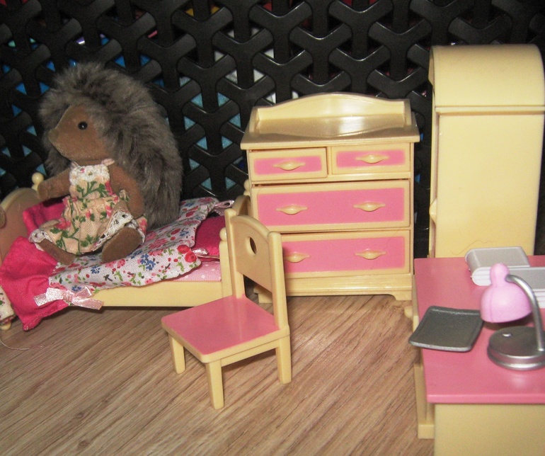 Мебель мне тоже нравится - это комната для девочки, наша первая мебель из коллекции Виладж стори. Занятно , что с ней в наборе ещё идёт фигурка девочки- медвежонка. Вот теперь думаю, что надо ей семью докупать :)
