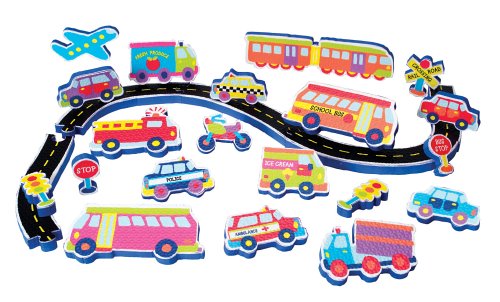 Нам 2,1 сын очень любит разные игрушки прятать в пене, потом искать, и коврик наш неизменный друг) ещё нравятся животные из мягкого материала типа губки, которые клеится к плитке в мокром виде