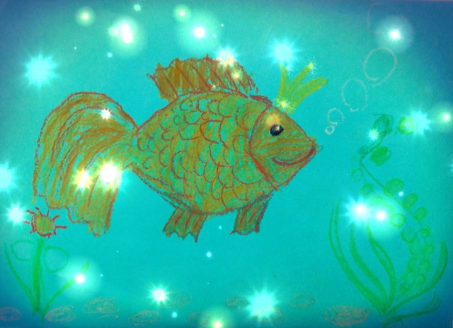 В этот раз я предложила нарисовать золотую рыбку, которая принесет нам главный приз тест-драйва Play-Doh.