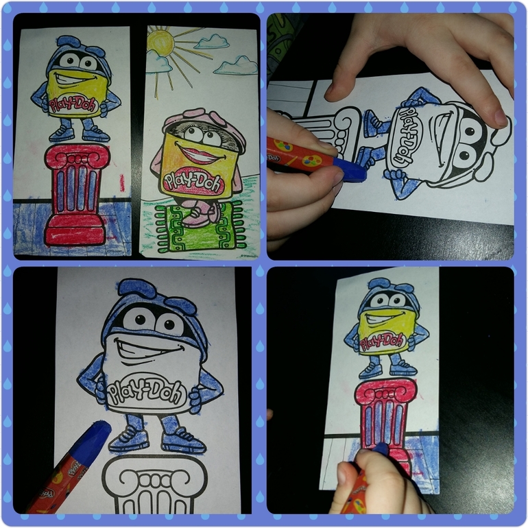 Пока я читала и изучала, он уже принялся раскрашивать то, что предлагал нам производитель - пара листочков с героями Play-Doh.
