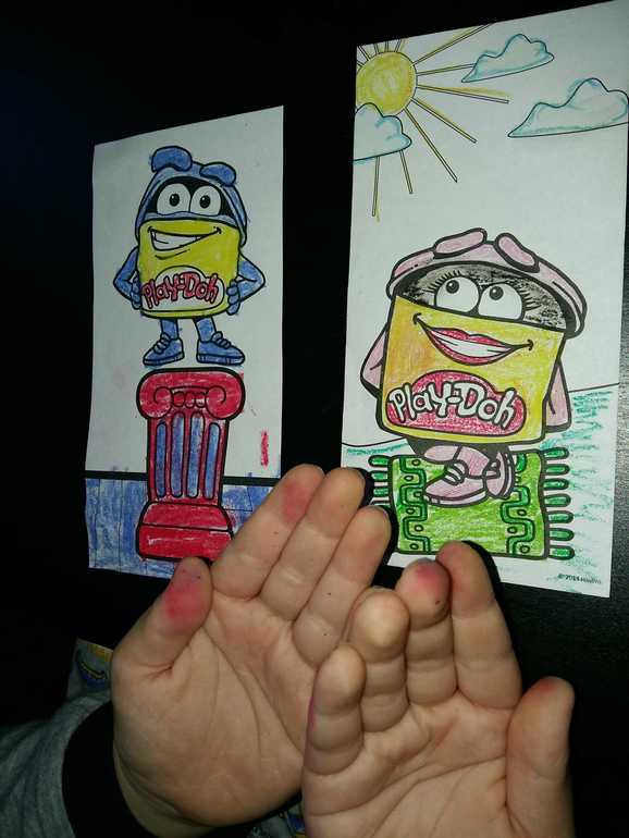 На следующий день ребенок заявил, что хочет рисовать карандашами Play-Doh. Причем во время рисования он рассказал мне, что есть специальный пластилин Play-Doh, он очень хороший и даже спел песенку из рекламы )))