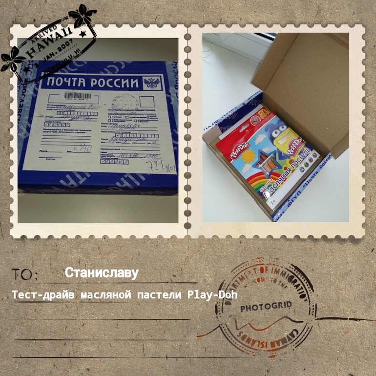 И вот, когда я уже и думать забыла про посылку от Play-Doh, обнаружила в почтовом ящике извещение о посылке. Бегом на почту!