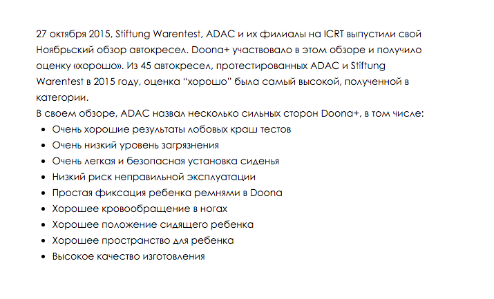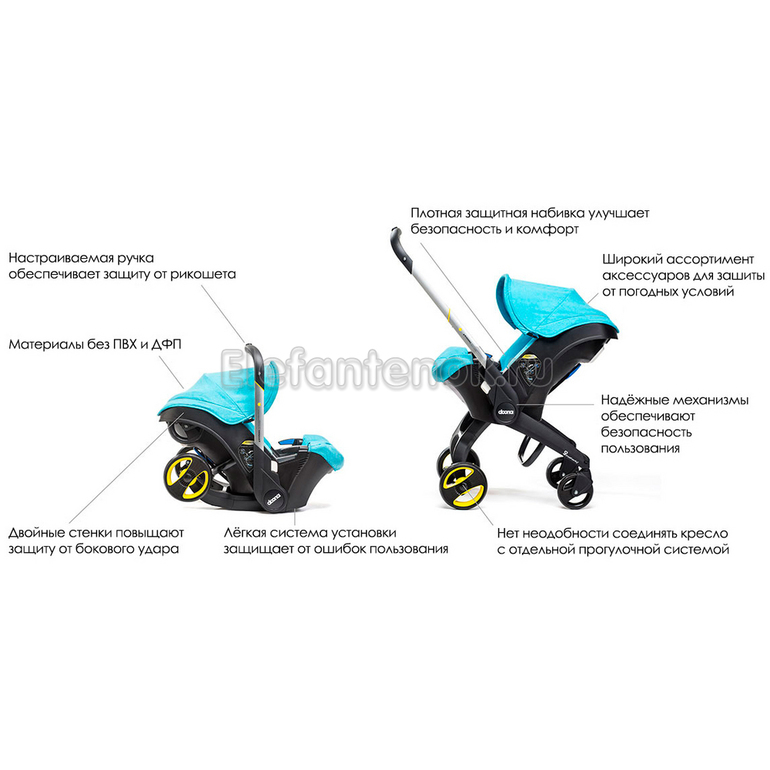 Я спрашивала на выставке babadu про грязные колеса. Они, во-первых, свисают над полом, а не сиденьем. В комплекте накидка на сиденье машины, и еще можно купить колпаки для колес защитные. ADAC пройден на уровне конкурентов, причем с хорошей фронтальной защитой. Это главное, потому что максимальные и самые частые повреждения от лобовых ударов. Вживую очень качественная вещь. Цена высоковата только.