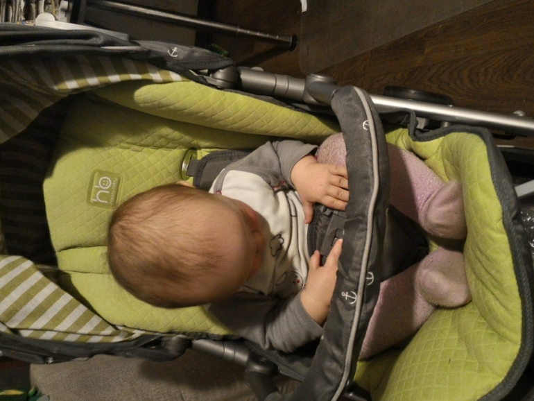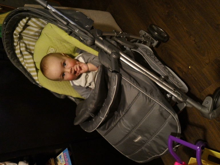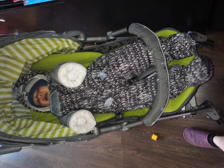 Тут я положила Ивана для фото, зимний комбинезон ему велик, пойдет на следующий год, ростовка 80+6. Тесновато, но все же шире, чем в нашей Valco Baby Zee Spark.