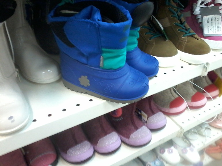 Была сегодня в фамилиив синегорье, там выбор по обуви больше, есть котофей дутыши с резиновой калошей или сноубутсы около 1000, подобные другой фирмы по 699 размеры 24-27, много кроссовок deodora обычные и замшевые выглядят прилично и качественно, но и цена под 2000, несколько пар ботиночек 25-27 размера, короче там выбор получше с ценами может и путаю что то))), много прикольных дешевых пазлов и игрушек))