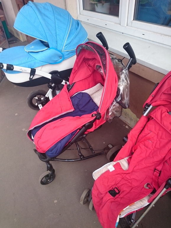 Немного по прошествии времени отвечу вам, красная коляска, либо Baby Care New York или Jetem London, еще есть куча подобных моделей) Обычно в комплекте должны идти накидка на ножки и еще рюкзак для мамы, и дождевик.