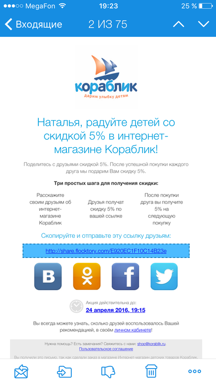 Странно...Но некая Диана уже воспользовался скидкой, мне письмо пришло.