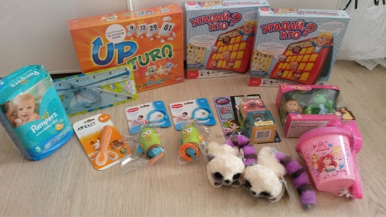 Вот например,погремушки это племяннице,ей сейчас 1 месяц,и подружка в конце весны должна родить,игры одну себе оставим,другую крестнику подарим,ему как раз 6 лет будет скоро,а лемурчика я средней дочке обещала,а второго она подружке из садика подарит,если старшая его себе не заберет)))).......так что все исходя из практичности-я заранее знаю ,что у меня есть подарки для бликих, причем по приятной цене,в других магазинах ценник на эти игрушки в разы больше)