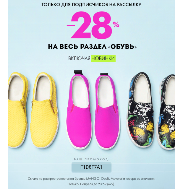 Распродажи. Скидки. Акции.Не могла не поделиться, промокод пришел на почту, тем кто зарегистрирован.