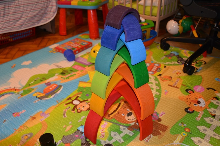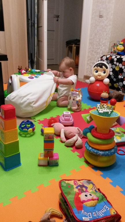 Я брала в kidklad.ru мягкий пол 60х60 например. До сих пор используем (как пополз и до 2,5 лет). На нем удобно играть, и легче мыть, чем ковёр. Материал ЭВА, не пахнет. Также брала паззлы составные, маленькие. Не рекомендую, вынимаются и ломаются мелкие детали (буквы, рыбки, листики и т.д.)