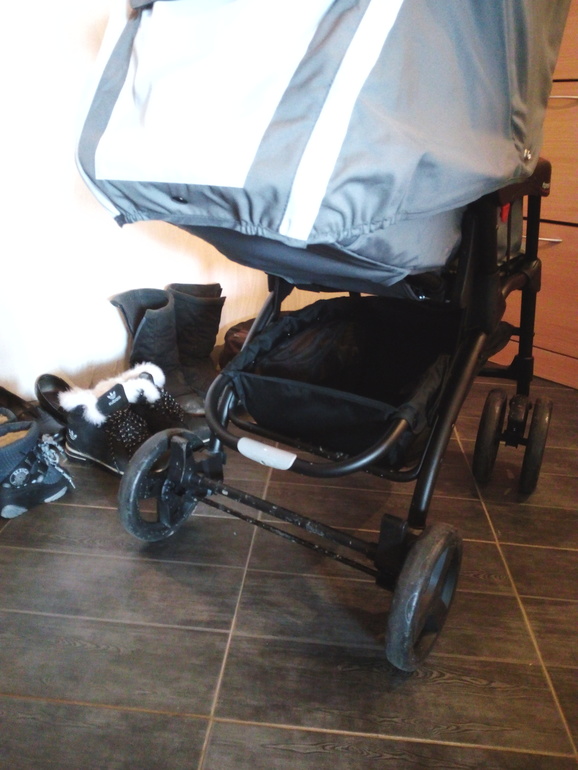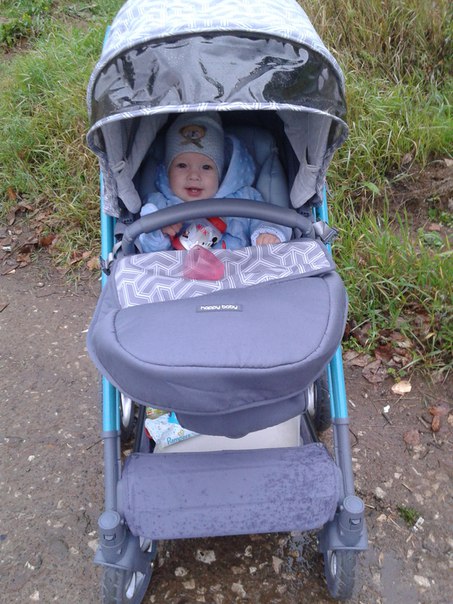 3)Хэппи бэби ультра. Продала после полугода. Ничего хорошего сказать не могу. Ход тяжелый, колеса передние перестают быстро вращаться и встают поперек дороги. Механизм перехода от люльки к сиденью неудобный. В сидячем положении накидка при любом ветре выворачивается. Очень тяжело с бордюрами, надо всем весом на нее навалится. Удобна детям до 75-80см. Люлька большая 80см, но не для зимы.