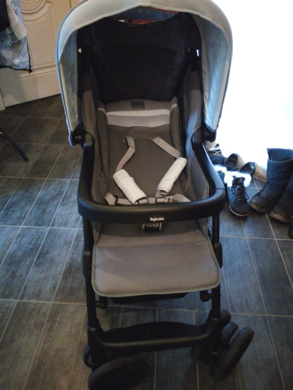4)коляска Дети, также для дачи дали, модель не знаю с перекидной ручкой. Обычная коляска, лицом к маме едет хорошо, в положении от мамы уводит влево. Маленькое спальное место, около 75см или меньше.
