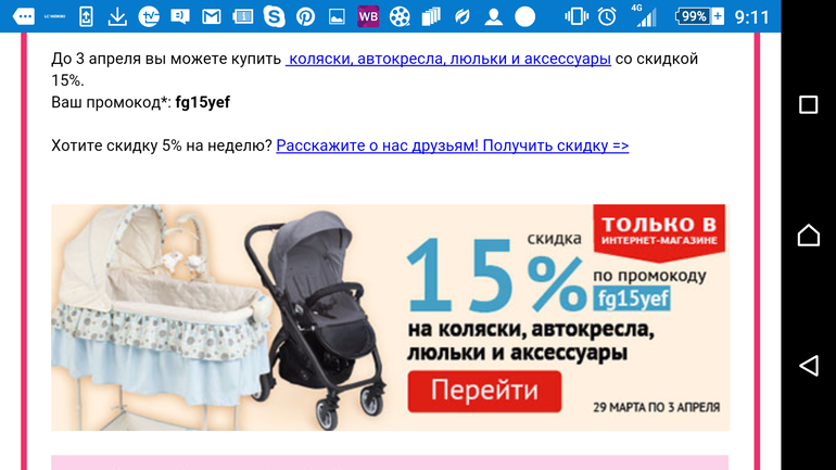 Настасия в Выбор товаров 10 лет Скидка 15% в дочки сыночки на покупку коляски! Распродажи. Скидки. Акции. Посмотрите еще 20 записей на эту тему Отменить Ответить Настасия Ну извините((хотела как лучше 😢 03.04.2016 Ответить Светлана не проходит( 03.04.2016 Ответить Мария Пробуйте еще, у меня на прчте такойже код... 03.04.2016 Ответить Лилия Он не на все коляски, а только на определённые , там если по ссылке проти увидите, я тоже сначала пыталась на свою которую хочу а оказалось что действует не на весь ассортимент 03.04.2016 Ответить отдам 1000 рублей при заказе в интернет магазине ДМ Отдам номера заказов в Ситилинке Чаты Беременных Выберите чат: Январята-2026 Февралята-2026 Мартята-2026 Апрелята-2026 Майчата-2026 Июнята-2026 Июлята-2026 Августята-2026