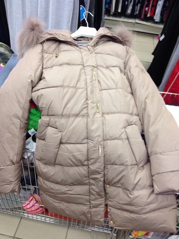 Так стоит какая-то обувь антилопа, висят чуть пальто шалуны (1299 кажется, дочке такое взяла, красивое!). А, еще пуховик De Salitto 162 кажется размера кофейно-бежевого цвета за 999, но там какое-то странное пятно в районе шва, как будто "вспотели" в нем.