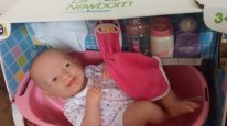У нас Бэби Борн, малый - очень Николь его любит Сашей зовет, есть большая кукла пупс тяжелый он для нее, а вот Сашу любит! Кукла должна быть легкая и небольшая все же!