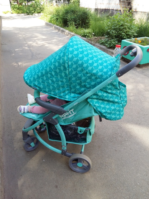 Я себе такую приобрела, только расцветка другая, желтая геометрия. колясочка классная. У меня доче почти 9 месяцев. Обкатываем коляску уже две недели. Из недостатков, для себя я обнаружила, только то, что накидка на ножки крепится на липучки ( дочка просыпается от звука) и еже механизм опускания спинки( ремень), но думаю привыкну.