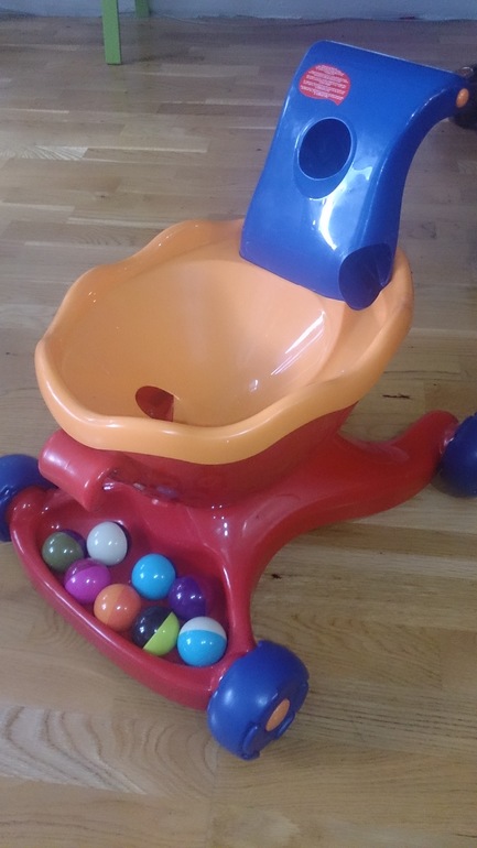 Ходунки, прыгунки, каталкиКупила сегодня в Фамилии за 999 рублей!!! Хотя сначала цена в фамилии была 2699. Сразу оговорюсь, что я в Саратове, и каталка была одна. Уже поиграли, ребенок в восторге). В наборе 9 шариков. Качественный пластик, особенно понравились резиновые колеса. Едет не быстро, ребенок вполне поспевает ее толкать. Очень устойчивая, практически 3 в 1: и игрушка, и каталка, и коляска для куклы.