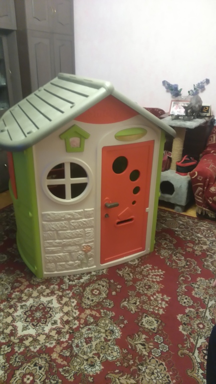 Девушка в связи с переездом срочно продавала за 9500 рублей, очень красивый с окнами и дверями, достаточно крупный домик. А главное, он у нее находился дома, год стоял и ее сын им вообще не интересовался, по этому состояние домика идеальное.