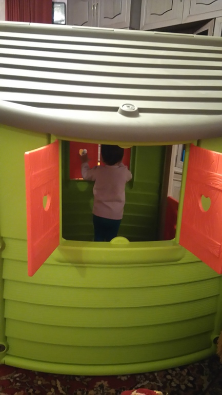 Я давно заметила, что Вике нравится играть в детских домиках, открывать закрывать окна и двери, и попросту там находиться - видать, чувствует личное пространство.