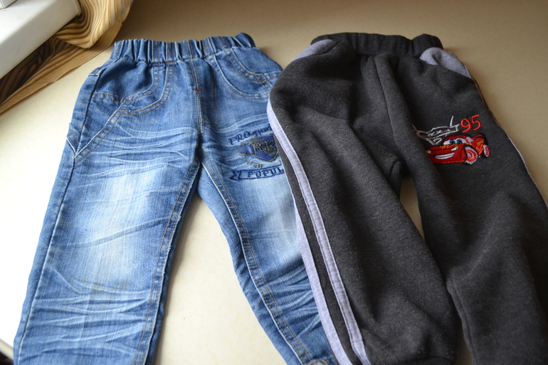 Штанишки бело-серые (с того года ,за счет резинки на ножках опять как раз)и новые коричневые теплые и синие тонкие