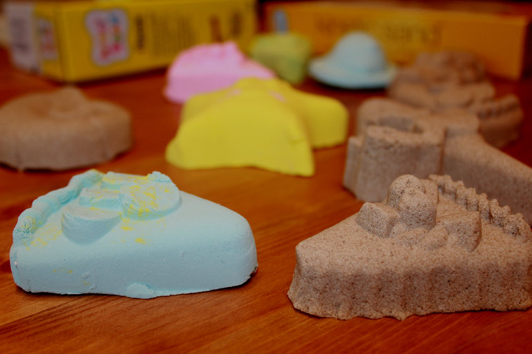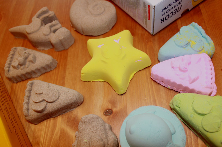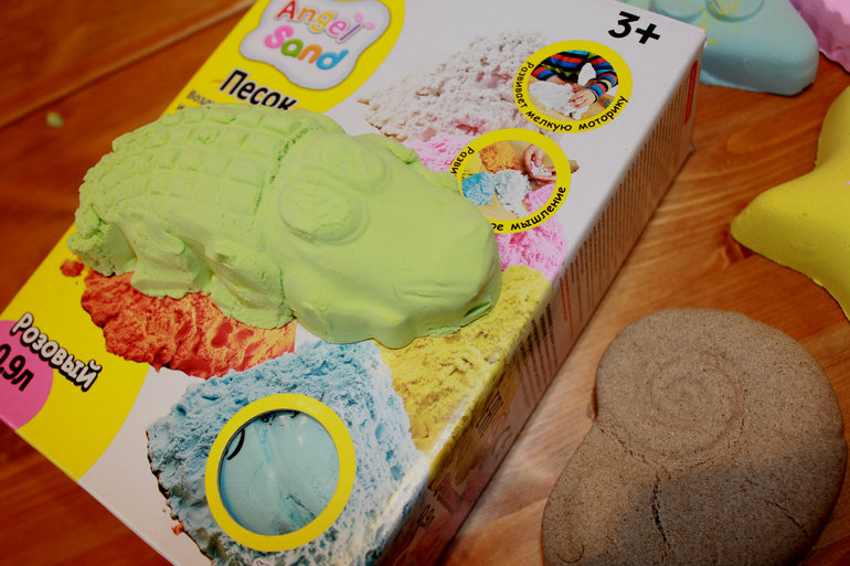 Кинетический песок проще убирать после игры. Как раз за счет более крупной фракции. Но при этом не могу сказать, что возни с уборкой ангельского песка много. В целом, драить полы, мыть ребенка в ванной после игры не приходится.