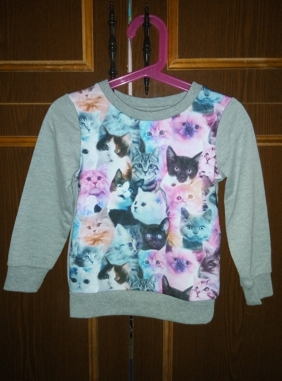 Свитшот с котиками - моя любовь, схватила сразу, у самой есть несколько подобных кофт, будем с дочкой щеголять. 284р