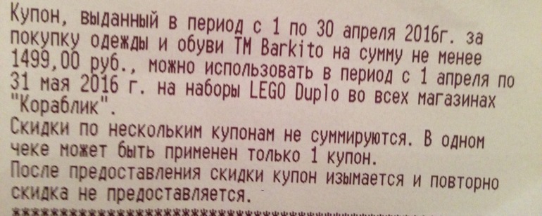 если в кораблике покупаешь на определенную сумму, дают купон на скидку 20%, правда на лего дупло