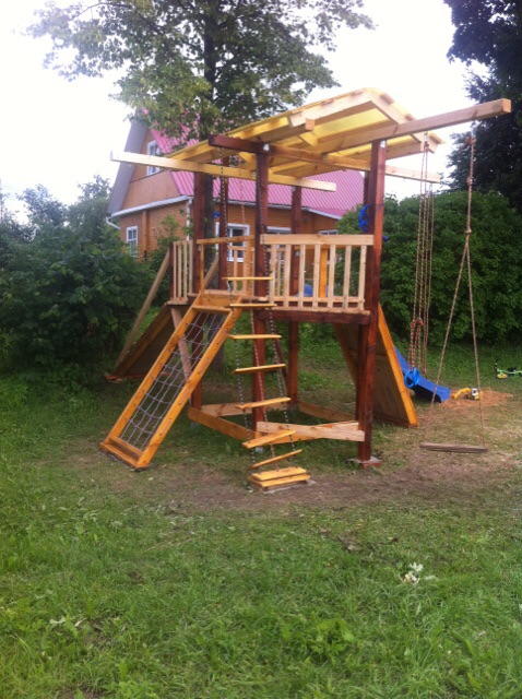 Ду, эту площадку делали в том году сами но нанимали местных строителей, за материал 12000+ 12000 работа(без горки ,канатов, краски....)все вместе обошлось где-то в 40 000, покупная такого плана стоила от 70000(брус брали толще чем в готовых площадках и устанавливали на спец.железные столбы что бы не гнила) на фото еще не докрашена