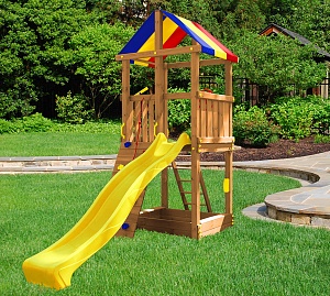 Это да Но можно подкорректировать - и лестницу, и качели и мат постелить под горку