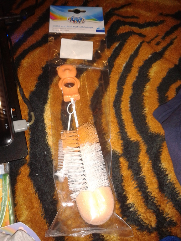 нужная вещь, т.к. порою не сразу можно помыть бутылочку (на улице), а после приходится долго и тщательно отмывать. пальцем не удобно :) большой не берет, а этот вариант очень даже не плохой. в ашане стоит до 100 р