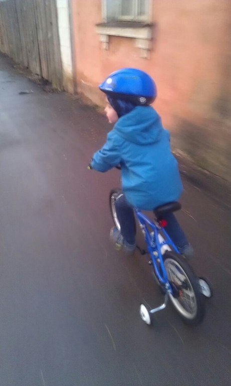 Я озадачилась, как научить, в итоге, благодаря советам девочек (спасибо всем, кто помогал советами и болел за нас!!), решила сделать так - купила и поставила боковые колеса, подняла седло, чтобы ногами сын не мог достать до земли, дома неделю подкладывала под боковые колеса книжки и ставила заднее колесо в холостой ход, устраивала ненавязчивые тренировки, увеличивая нагрузку при кручении вперед ручным тормозом, иначе очень легко крутить.