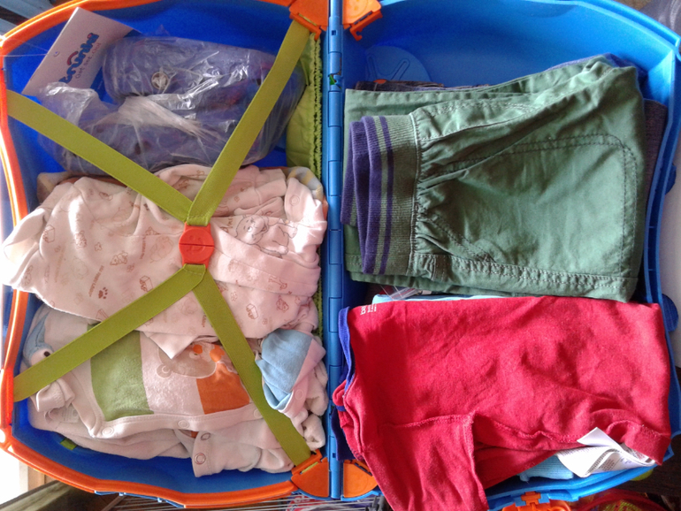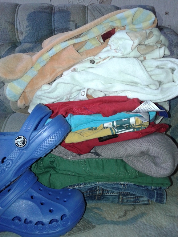 В отзывах вместимость показывают в мишках, а мне делать больше нечего, как мишек в ручной клади возить, если я без багажа еду. Накидала на скорую руку условный набор одежек для парней на недолгую поездку.