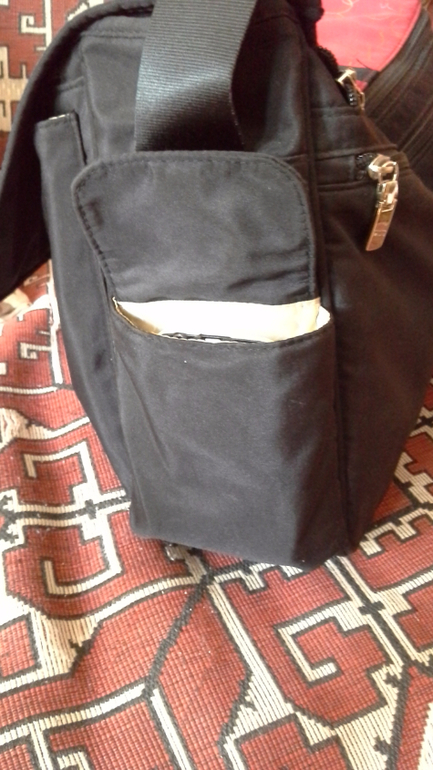 * Если вещей много и сумка переполнена, то она просто не закроется, если (к примеру) в боковом кармане лежит электронная книжка или документ, то в дождик можем промокнуть и вообще будет видно, что именно лежит, т.к. замок-магнит только с одной стороны сумки. И получается неравномерное закрытие.