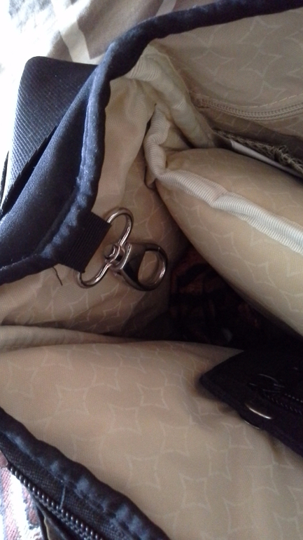 * Внутри сумки кольцо для ключей. Очень удобно, чтобы не искать ключи, а если прикрепить брелок-рулетка, то можно не отстегивать, а просто оттянуть.