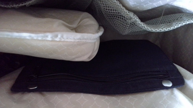 * Отдельный карман для телефона на замке-магнит. Можно достать одной рукой и даже если везешь коляску. У меня помимо телефона :) лежит нош па и можно ещё что нибудь положить. Хотя тел. не маленький.