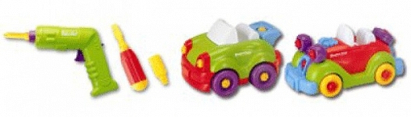 Наборы от Keenway серии Build and play. Есть наборы и с машинками, и с самолётиками, и с вертолётом. Всё разбирается и собирается с помощью шуроповерта и отвезти, которые входят в набор. Машинки не маленькие.