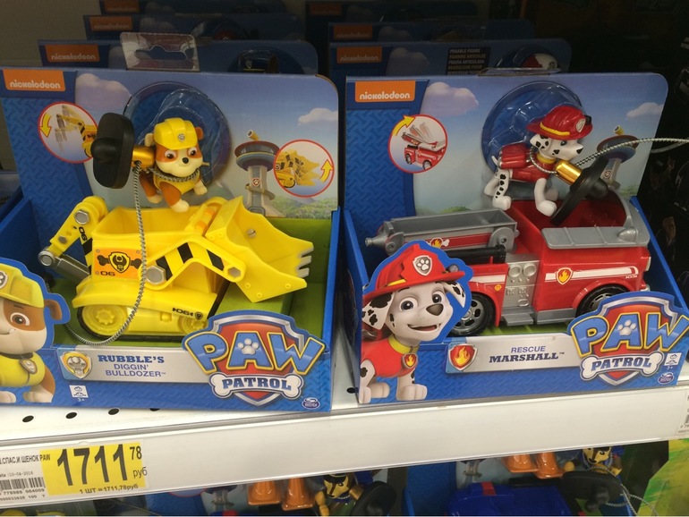 У нас есть и оригинал щенячий на машинках, но покупать фигурки за 4 т.р. почти рука не поднялась. купила китайские, качества хорошего, не воняют, рюкзачки открываются, ребенок счастлив неделю играет, в садик носит героев своих. я довольна и все удовольствие, 1300 или 1200.