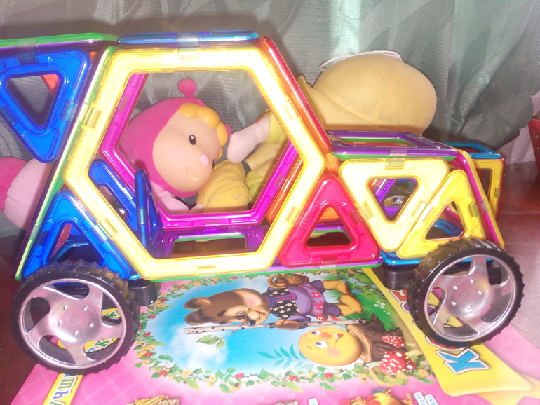 Фигуры фигурами, а машина, как не странно, ей нравится больше всего, она полноценно едет по полу, не рассыпается.