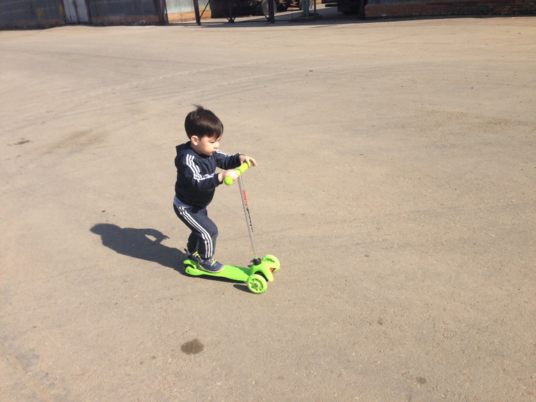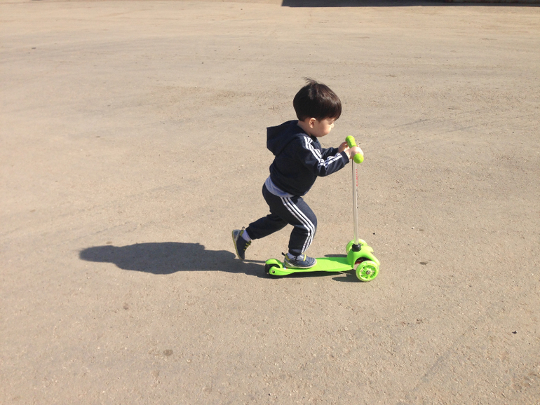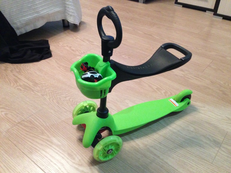 Сыну очень нравится на нем кататься. Самокат очень маневренный, очень легкий (в особенности, по-сравнению, с самокатом дочери). Отличным бонусом идет то, что колеса светятся при езде. В общем, рекомендуем данный самокат! К тому же он дешевле Мини Микро на порядок!))