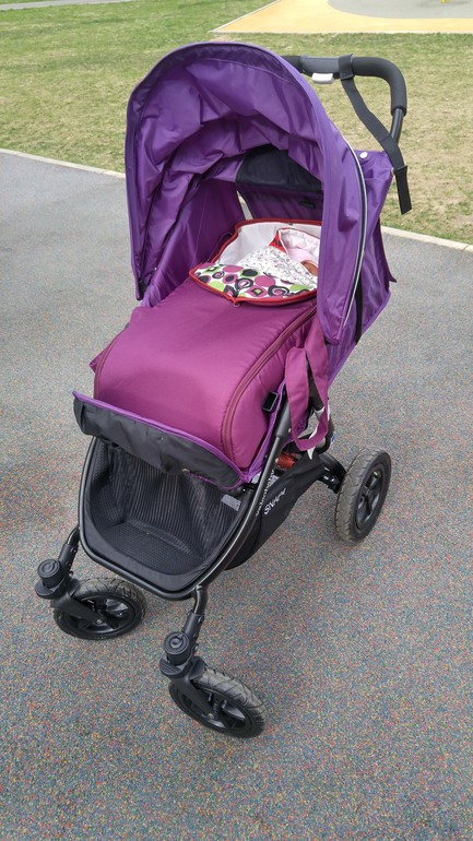 коляска очень легкая, со швом после кесарева легко спускаю ее с лестницы и поднимаю на задних колесах, усилия минимальны, дочь не просыпается. катаю одним пальцем коляску) по довольно рыхлому песку прошла нормально, но надо понимать, что дочка пока очень легкая. с ребенком 15 кило это будет посложнее.