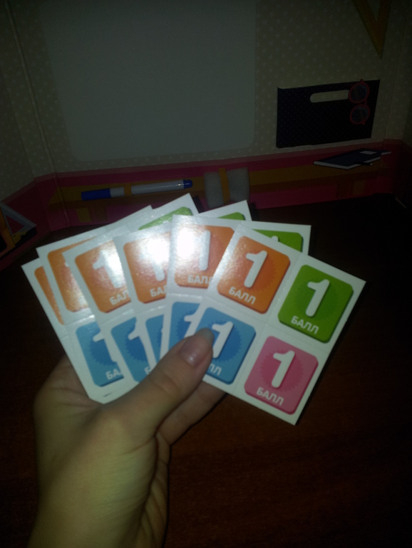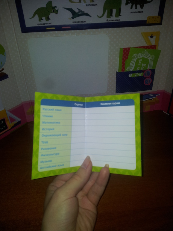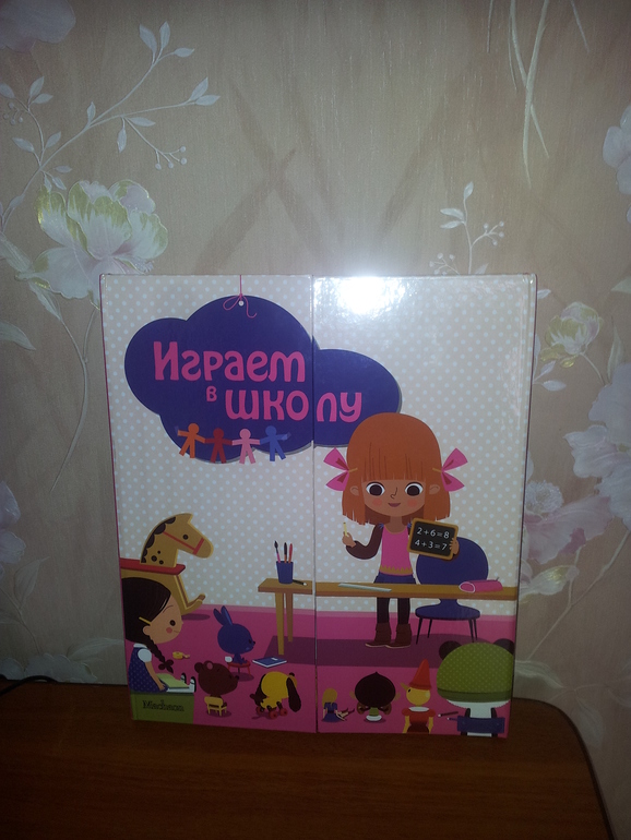 Я решила немного подготовить её к этому событию и нашла хитренькую игрушку,в которой мы познаем все прелести учебы и конечно же в игровой форме черпаем знания-у нас есть перемены,домашние задания и школьные звонки,а сзади дочери(на парте-стуле с торчащими коленками сидит муж-жуткий неуч и непоседа)