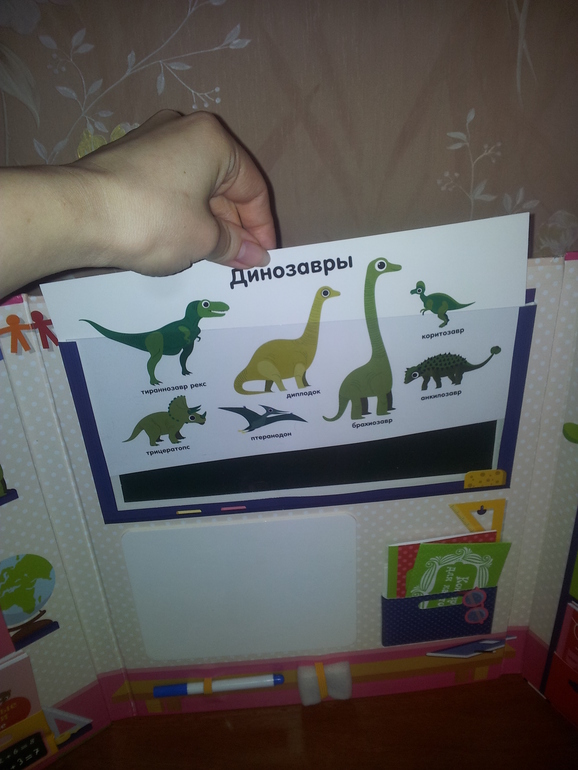 На школьной доске имеется окошко из плотной пленки,туды мы можем вставлять таблицы для уроков(из таблиц еще имеется карта России и продолжение алфавита)