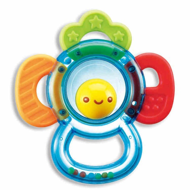 9. Погремушка-прорезыватель. Легкая, смайлик крутится. По необъяснимой причине любимая у нашего сына, первая к которой он вообще потянулся - другие еще долгое время игнорировал. Хотя держать и не особо удобно, все равно первая которую взял и стал держать (двумя ручками). Может, дело в смайлике?) - 395 р.