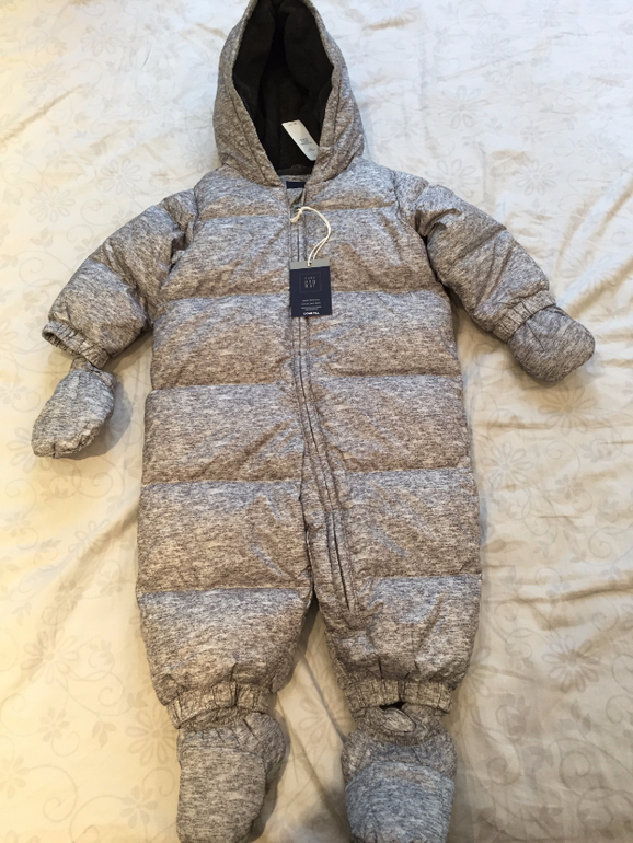 Комбез тоже ГЭП пуховой, за 20 баксов... Вот только глядя сейчас на фотки поняла, что у меня любимый цвет детских вещей преимущественно серый... это нормально???)))))
