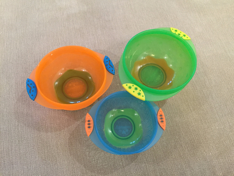 Мисочки на присосках Munchkin. #1 бестселлер на Амазоне и я теперь поняла почему.. 3 тарелочки разных размеров из очень прочного неубиваемого пластика. Не содержат вредных веществ. Присоску от стола ребенок отодрать не может, даже прилагая все свои усилия) хорошо моются в посудомойке.. В общем достойная недорогая детская посуда.