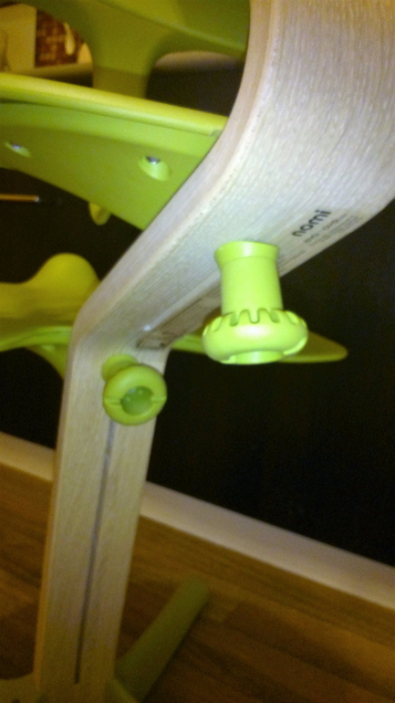 Конструкция ножек стульчика Nomi полностью исключает его выскальзывание и опрокидывание. Даже если ребенок решит сам на него залезть, то не сможет опрокинуться вместе со стулом. А когда наш сынок елозит и пытается оттолкнуться от стола, то за счет двух колесиков на задних ножках, стульчик просто откатывается назад.