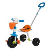 Вообще удобно когда подножка большая - ноги не выпадают, и пластиковая корзина сзади лучше, чем тканевая, сполоснул водой и нет проблем. У нас был похожий у старшего, покупали вообще месяцев в 9, катались очень долго, но педали, по-моему, так и не научился крутить))
