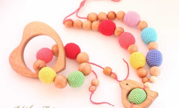 У нас были самые обычные слингобусы, можжевеловые, обшитые...отлично.как бусы в принципе не носила, в лапки давала) до года дочка ими активно играла, после года все